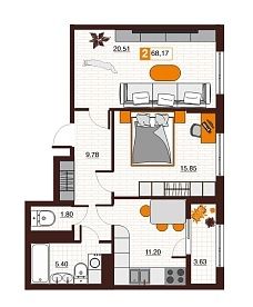 Продаётся 2-комнатная квартира в строящемся доме (Дом 4А), срок сдачи: II-кв. 2027, общей площадью 68.17 кв.м., на 13 этаже. Новый жилой комплекс ''Фамильные кварталы'' от застройщика ''СЗ СВ ДЕВЕЛОПМЕНТ'' расположен по адресу Россия, Оренбург, Просторная улица.