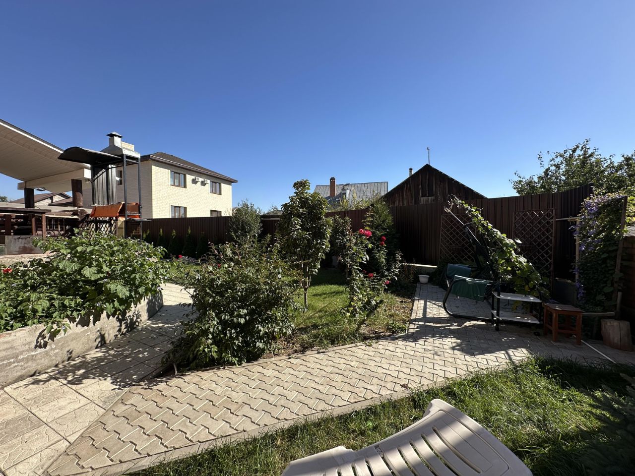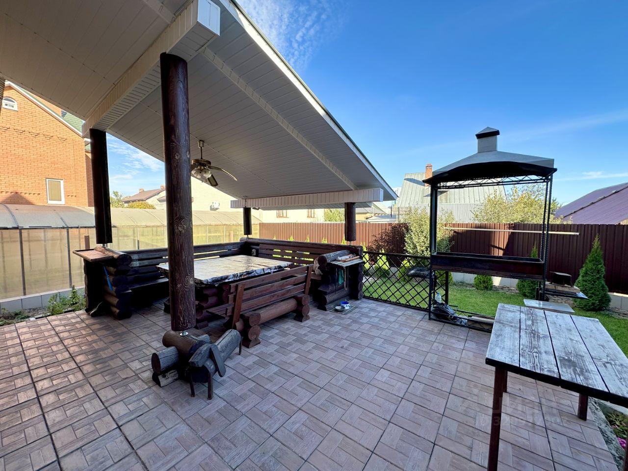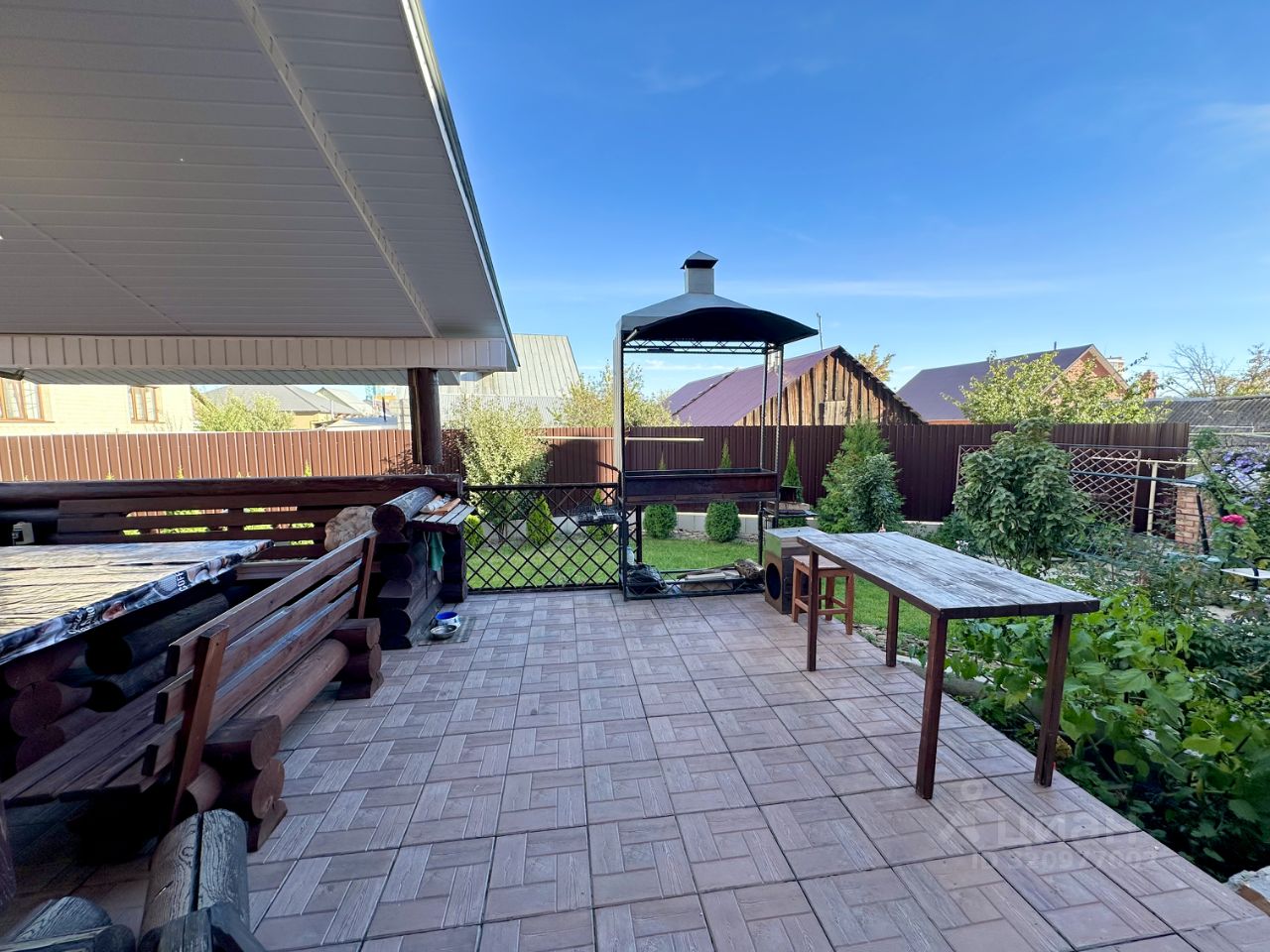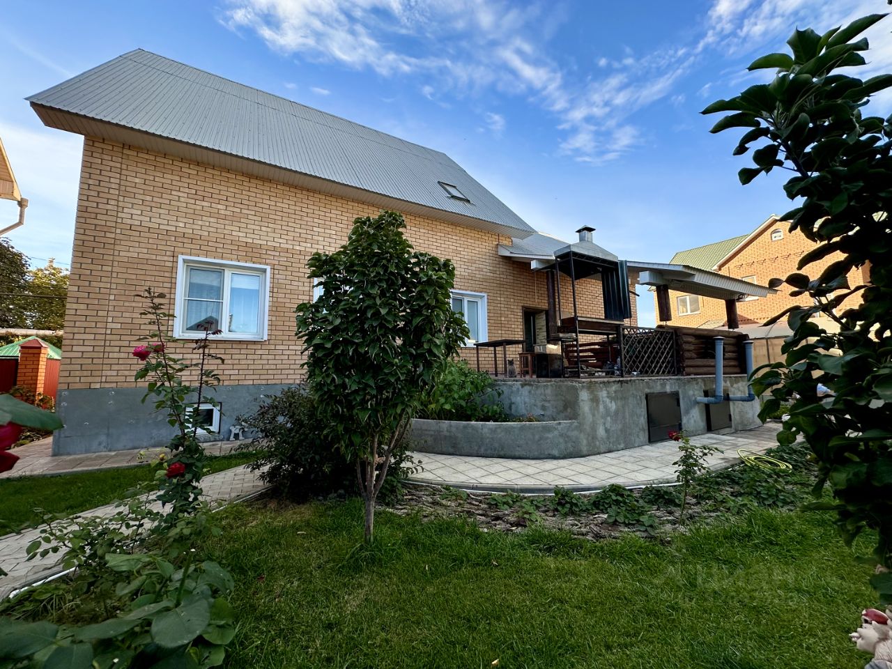 Во дворе: - Терраса под навесом с мангальной зоной - Ухоженный двор с ландшафтным дизайном и насаждениями.