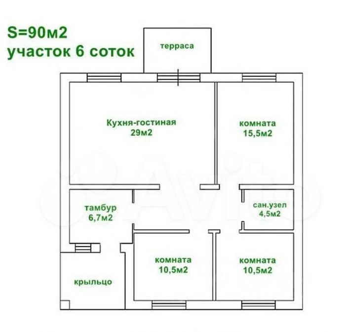 Общая площадь дома 90 кв.м. на участке 6 соток Дом с современной продуманной планировкой: просторная кухня-гостиная с выходом на террасу, общая зона в доме, где может собираться все семья. Три изолированные спальни, санузел и котельная в которой можно организовать прачечную, просторная прихожая с местом под шкаф.