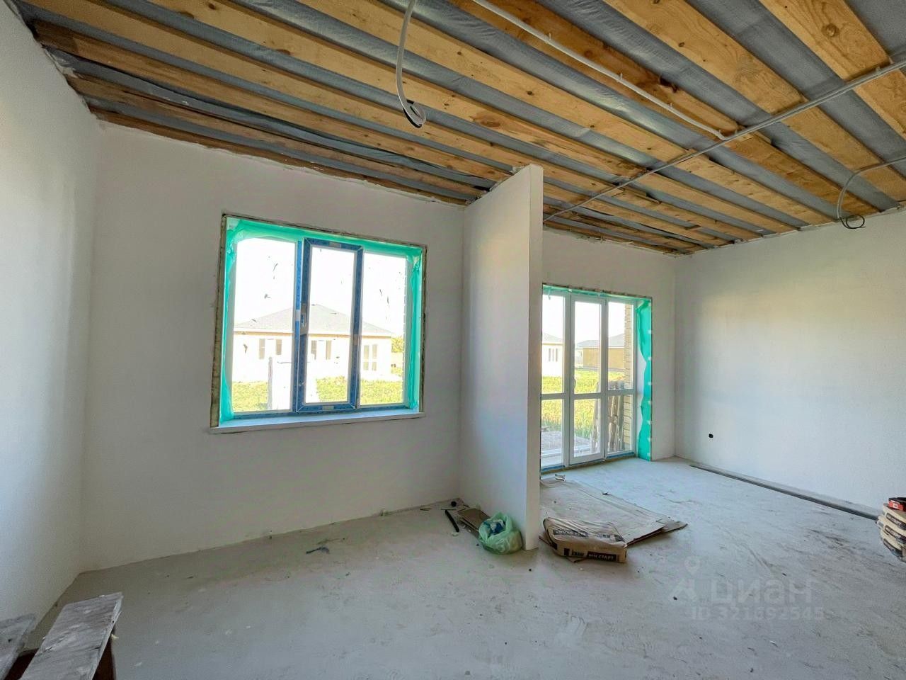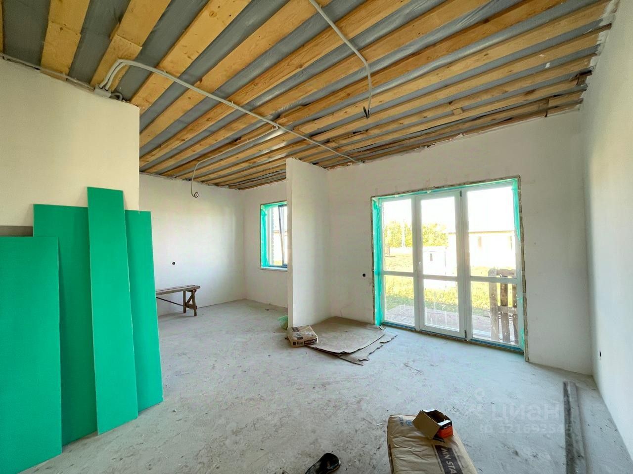 Отделка предчистовая: - штукатурка и шпаклевка стен, белые выровненные, - стяжка пола, под напольное покрытие, - разведенная по дому электропроводка.