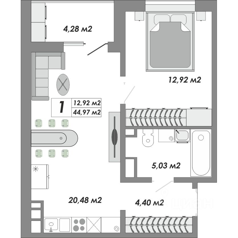 Общая площадь44,74 м2