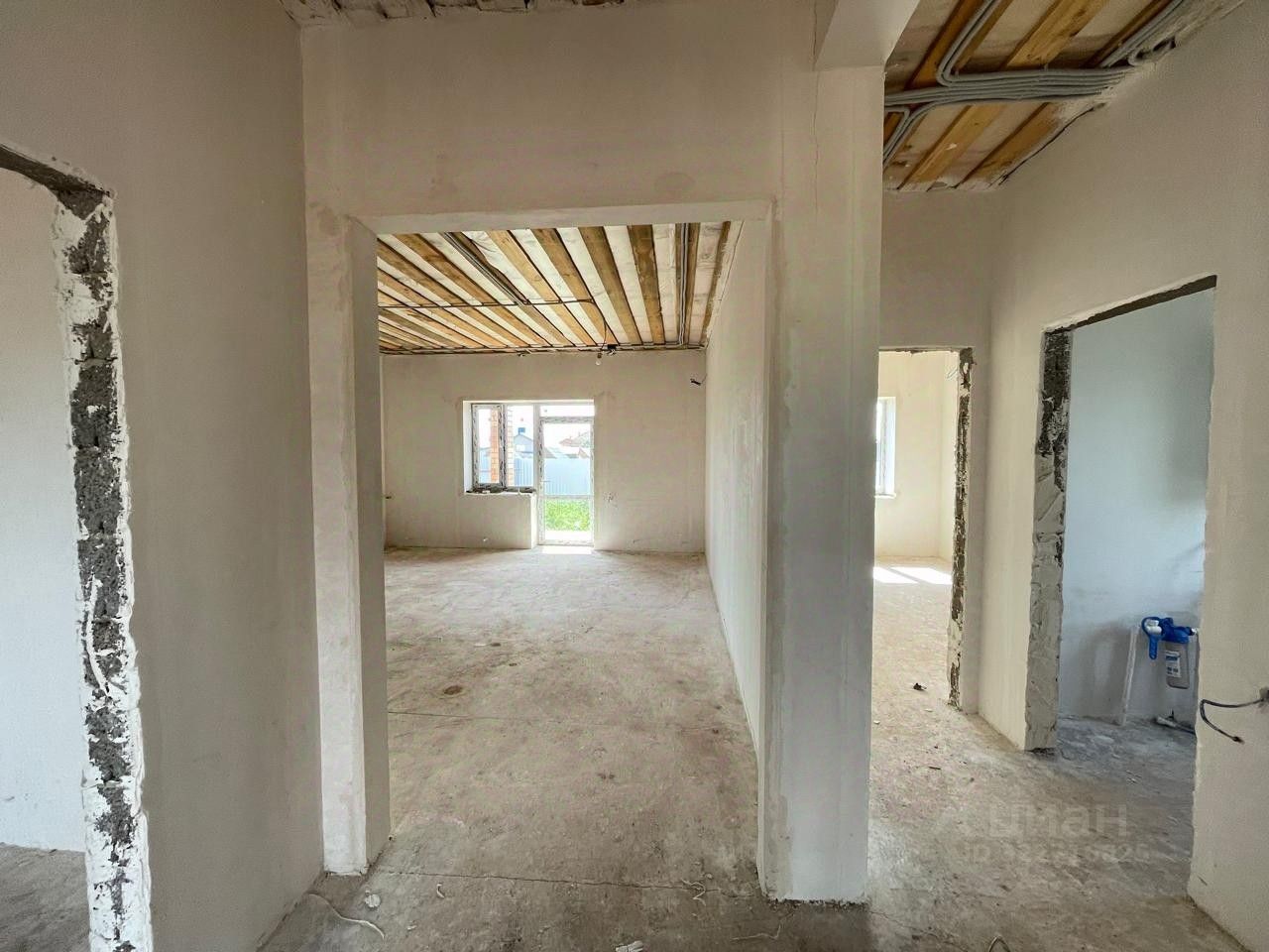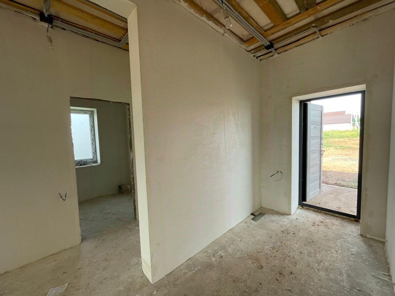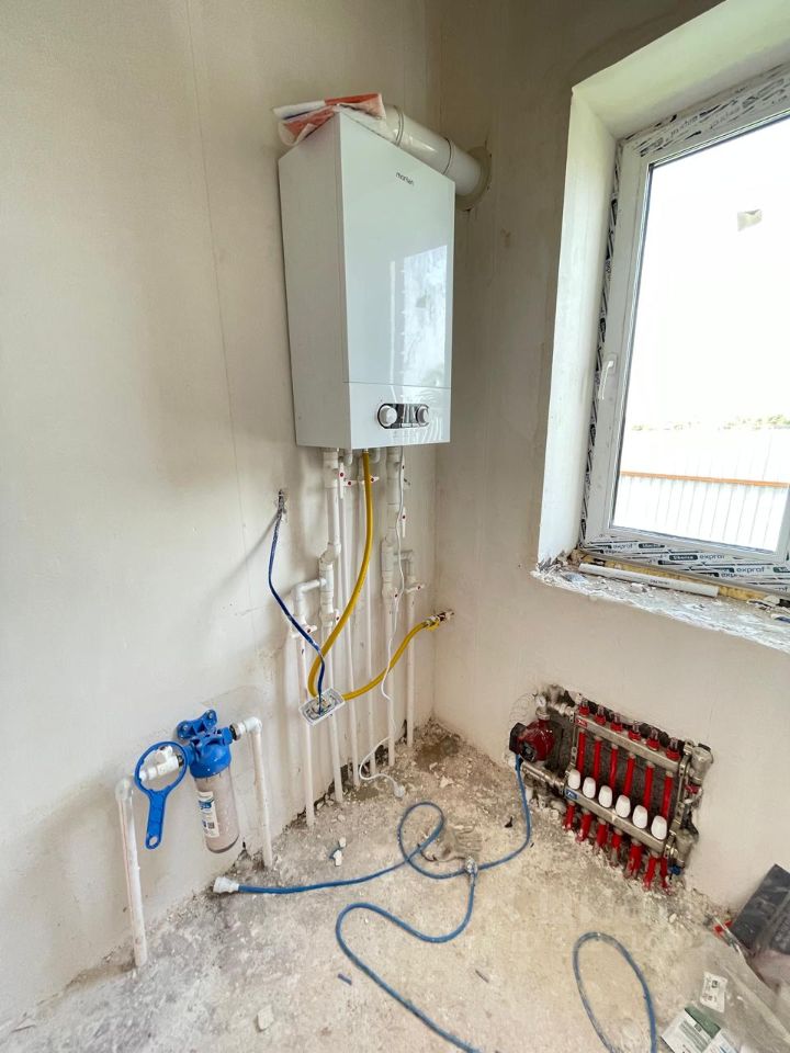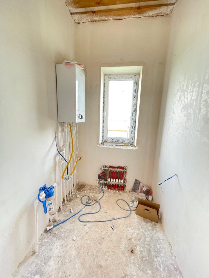 Дом с предчистовой отделкой: стяжка пола, теплые полы по всему дому и радиаторы, выровненные стены под обои, электрическая и сантехническая разводка, газовое автономное отопление (установлен двухконтурный котел), все коммуникации подведены и подключены.