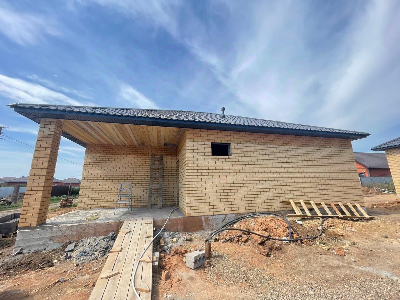 Дом с предчистовой отделкой: - Стены оштукатурены под обои, - Пол стяжка по маякам, - Установлена входная дверь с терморазрывом, - В доме полностью разведена электропроводка по госту, - Водоснабжение за счет собственной скважины, - Канализация - септик на 3 кольца.