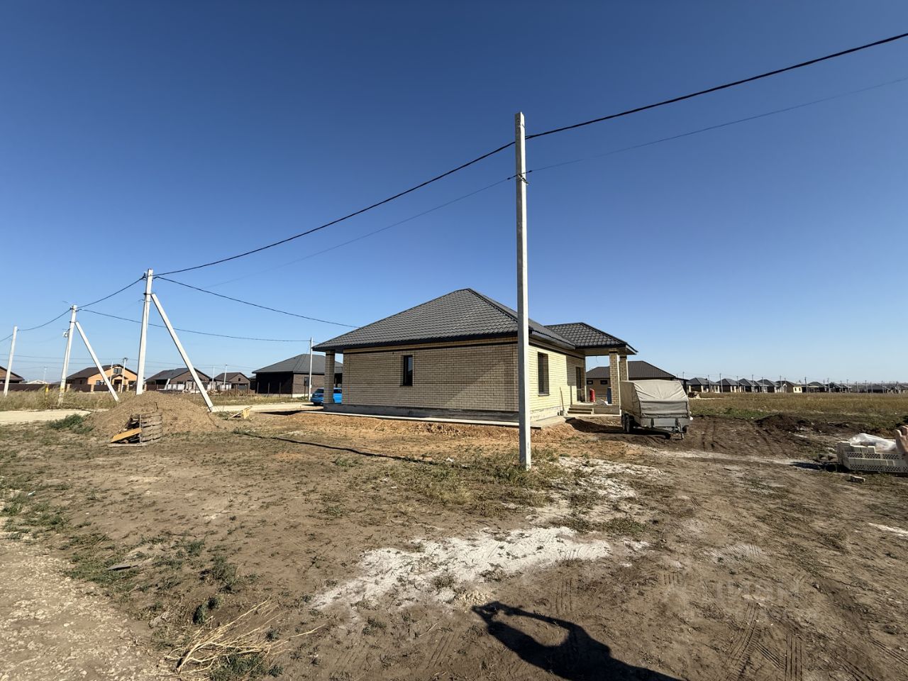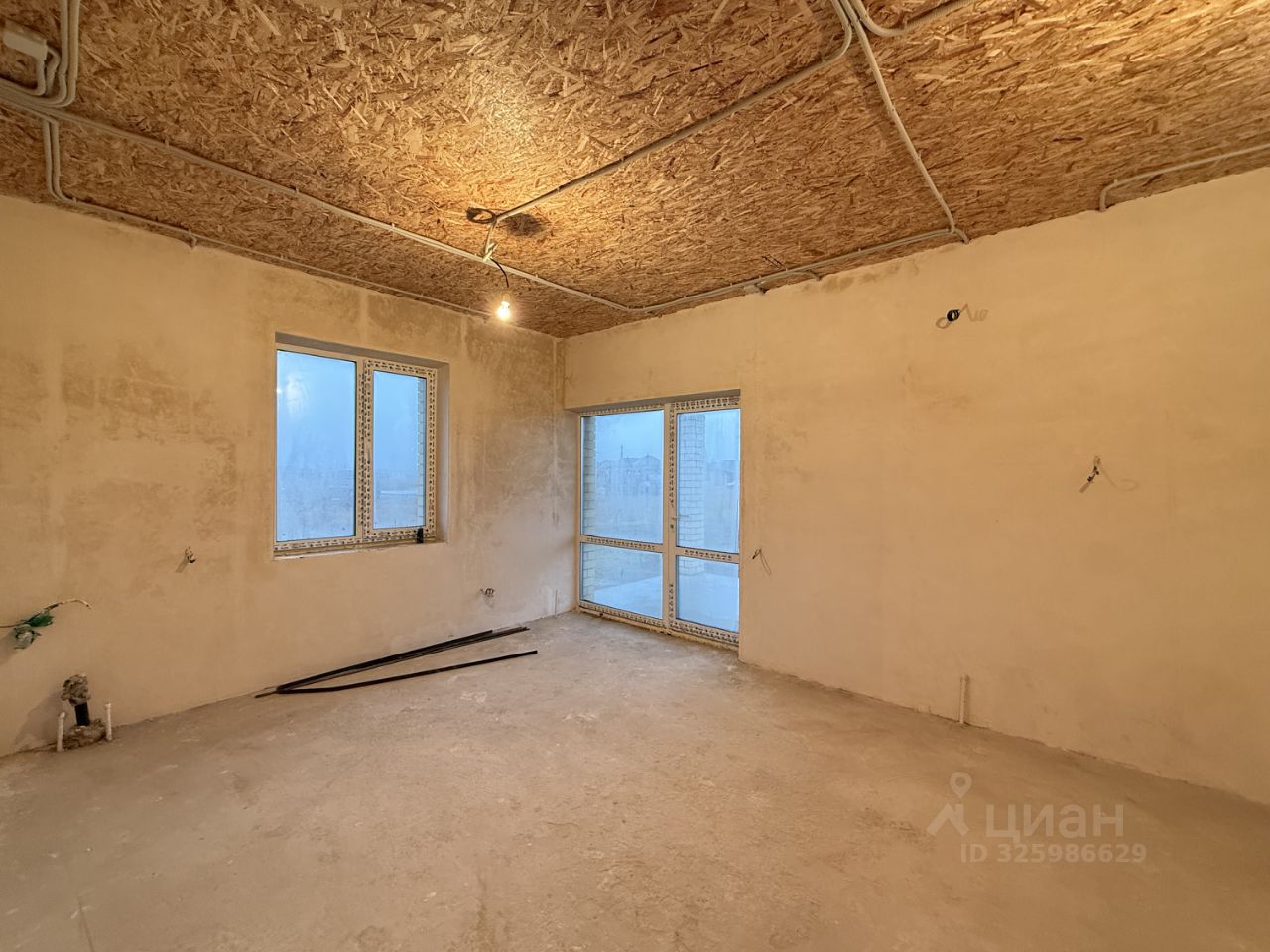 Отделка предчистовая: - штукатурка стен, белые стены выровнены под обои, - Потолок подшит доской, - стяжка пола, - разведенная по дому электропроводка.