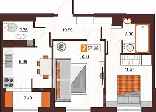 Продаётся 2-комнатная квартира в строящемся доме (Дом 4Б), срок сдачи: II-кв. 2027, общей площадью 57.98 кв.м., на 17 этаже. Новый жилой комплекс ''Фамильные кварталы'' от застройщика ''СЗ СВ ДЕВЕЛОПМЕНТ'' расположен по адресу Россия, Оренбург, Просторная улица.