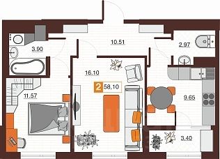 Продаётся 2-комнатная квартира в строящемся доме (Дом 4Б), срок сдачи: II-кв. 2027, общей площадью 58.1 кв.м., на 11 этаже. Новый жилой комплекс ''Фамильные кварталы'' от застройщика ''СЗ СВ ДЕВЕЛОПМЕНТ'' расположен по адресу Россия, Оренбург, Просторная улица.
