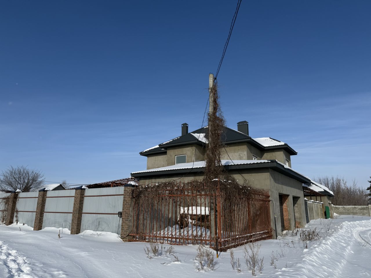 Дом трёхэтажный (с подвалом, в подвале залита чаша под бассейн 6*4), требует ремонта, что позволяет будущим владельцам реализовать свои дизайнерские идеи. Внутри девять комнат, а также терраса или веранда для отдыха. В доме предусмотрен газ, водоснабжение осуществляется через скважину.